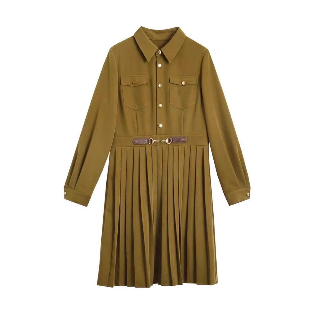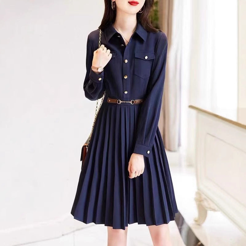 100-Fold Dress Autumn 2025 New Collar Loose Long Sleeve A Simple Elegant Dress Women's Long Model HZ1220