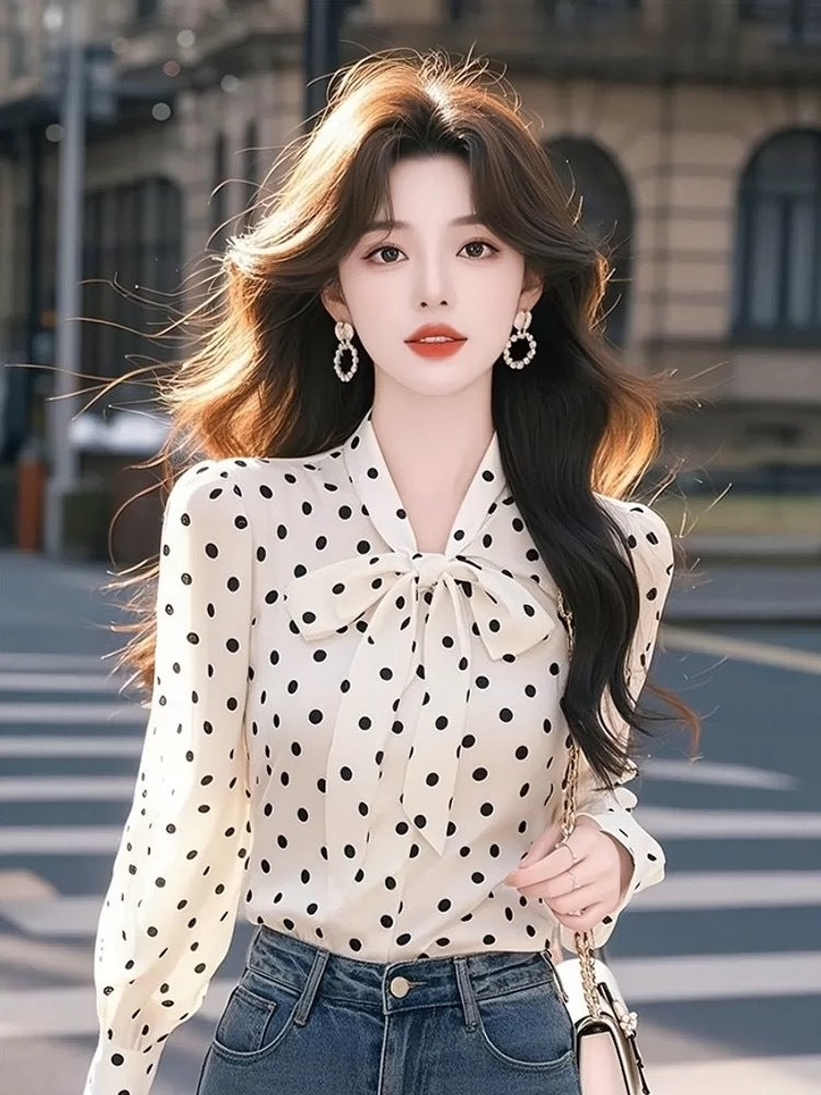 Korean Light Luxury High-End Feel Blouse This Year's Popular White Chiffon Bow Shirt Women's Spring 2025 New HZ1208